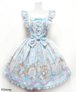Brands such as Angelic Pretty, Baby, The Stars Shine Bright, and Metamorphose temps de fille have released collections directly inspired by Alice, often incorporating teacups, playing cards, clocks, and rabbit motifs into their prints. Some prints, like Angelic Pretty’s “Alice in Wonderland” series (2010–2015), include tiny illustrations of the Cheshire Cat or the Mad Hatter’s tea party scattered across skirts, creating a wearable narrative that evokes Carroll’s story. These prints are not just decorative; they allow the wearer to physically inhabit a fantastical world, mirroring Alice’s journey through Wonderland.